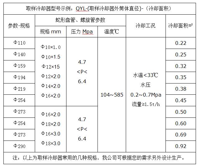 二、蒸汽取樣冷卻器設備型號與規(guī)格